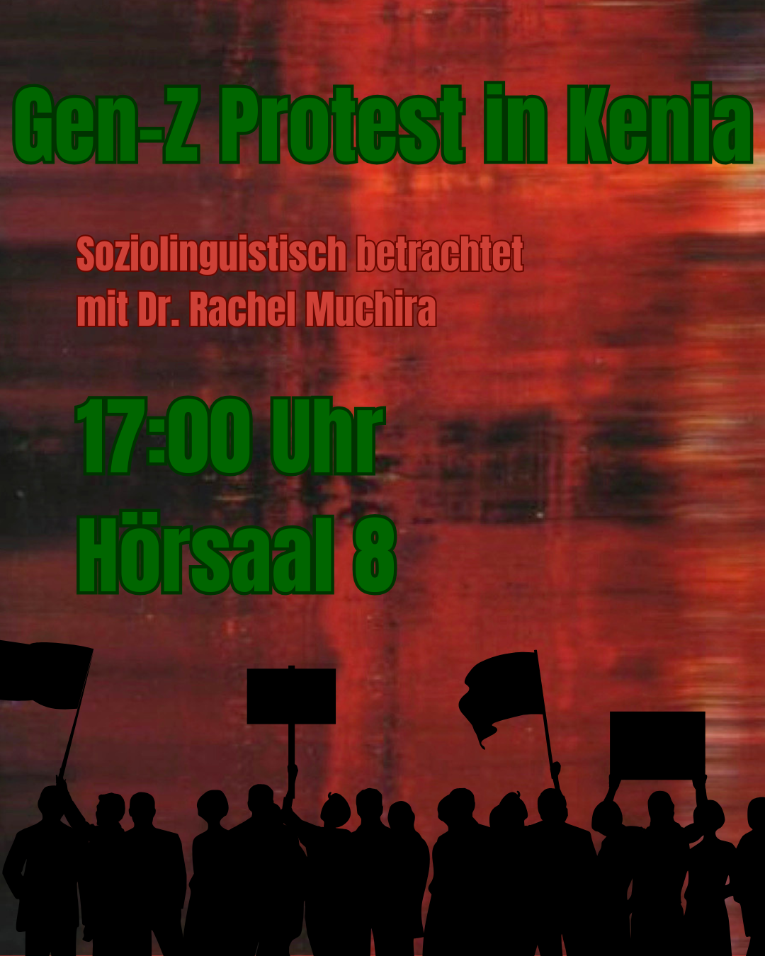 Dr. Muchira wird über ihre Forschung über den Gen-Z Protest in Kenia berichten und diesen in einer soziolinguistischen Sicht analysieren.